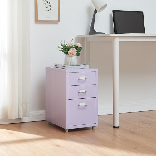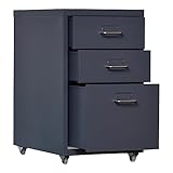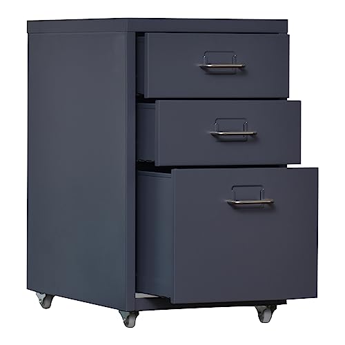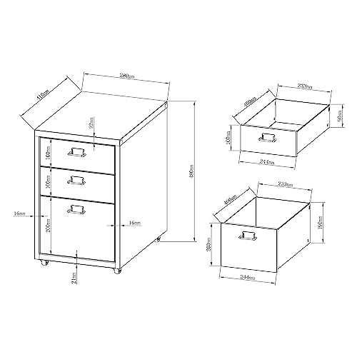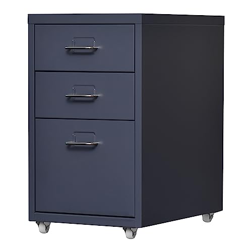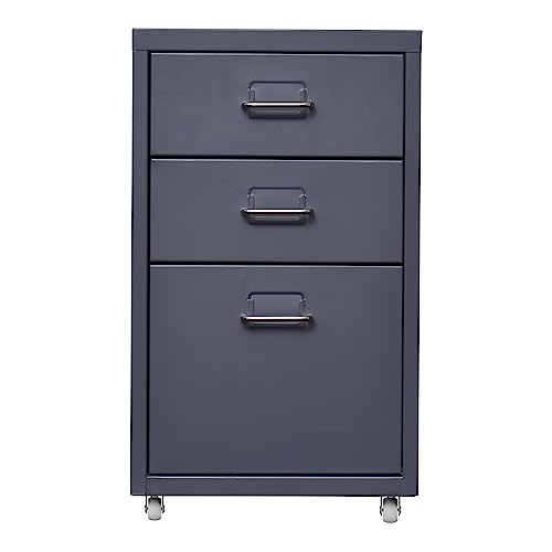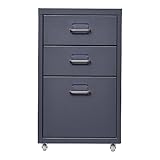 [en.casa] Archivador Móvil Kökar Organizador con 3 Cajones Portaetiquetas Cajonera de Oficina con Ruedas para Despacho Taller Acero - Gris