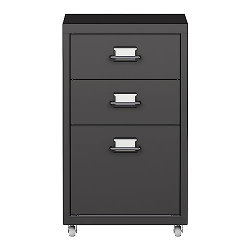 [en.casa] Archivador Móvil Kökar Organizador con 3 Cajones Portaetiquetas Cajonera de Oficina con Ruedas para Despacho Taller Acero - Negro