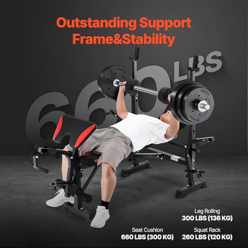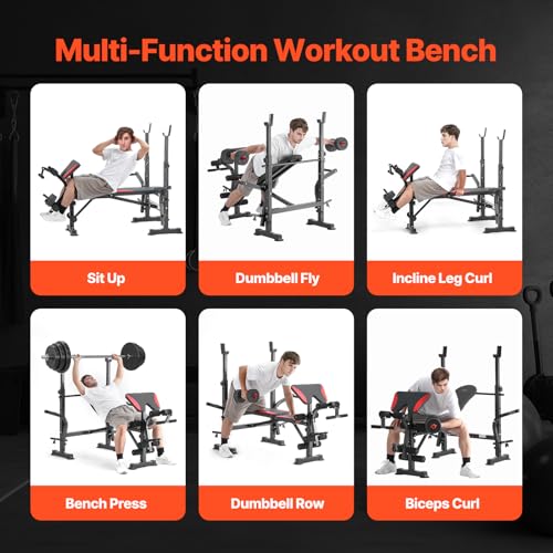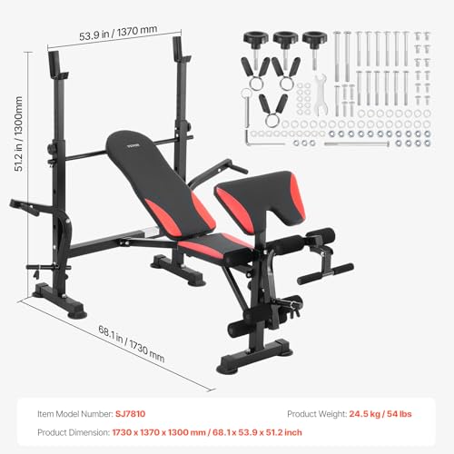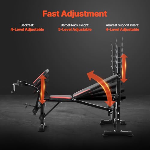 VEVOR Banco de Pesas Ajustable Multifuncional para Entrenamiento de Cuerpo Completo, Banco de Ejercicios de 300 kg para Entrenamiento de Fuerza en el Gimnasio en Casa, 1730 x 1370 x 1300 mm, Negro