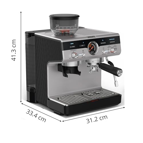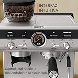 Krups Precision, Cafetera profesional para espresso y capuccino, con molinillo integrado y 30 ajustes de molienda, ajustes de preinfusión y control de temperatura, Acero inoxidable/Negro, XP801T10