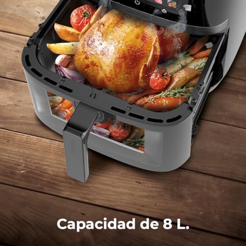 Cecotec Freidora de Aire sin Aceite de 8L con Doble Resistencia, Plancha, Grill, Air Fryer Cecofry&Grill Duoheat 8000. 2200W, Dietética y Digital, Ventana, Temperatura Regulable 80-200°C, 8 Menús