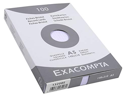 Exacompta - Ref. 13271E - Caja de 10 cajas de 100 fichas bristol cuadrículas 5x5 sin perforar, formato 75 x 125 mm, colores surtidos