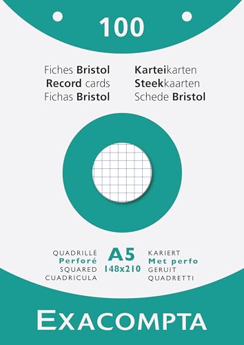 Exacompta - Ref. 13378E - Caja de 10 cajas de 100 fichas bristol cuadrículas 5x5 sin perforar, formato 148 x 210 mm, colores surtidos