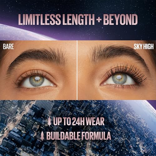 Maybelline New York, Máscara de pestañas Lash Sensational Sky High, Volumen y Longitud, Tono Space Diamond (Glitter Top Coat), 7.5 ml