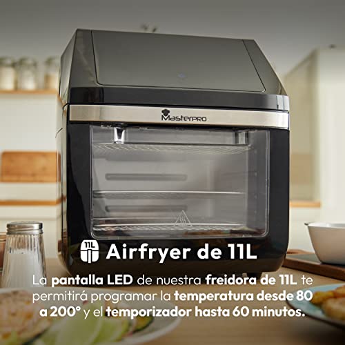- Masterpro rocket 1100 freidora de aire caliente 11l y mini horno 1800w con revestimiento cerámico- 10 programas cesta giratoria y grillMejor precioEnvío gratis|- €137,95