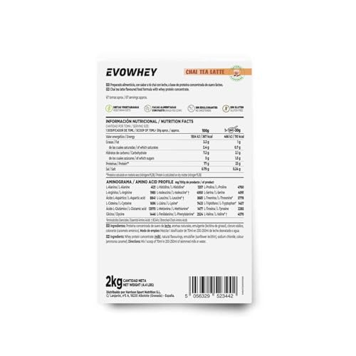 HSN Evowhey Protein Sin Edulcorantes | Té Chai con Leche 2Kg = 67 Tomas por Envase Concentrado de Proteína de Suero | 100% Whey Protein Concentrate | No-GMO, Vegetariano, Sin Gluten ni Soja