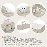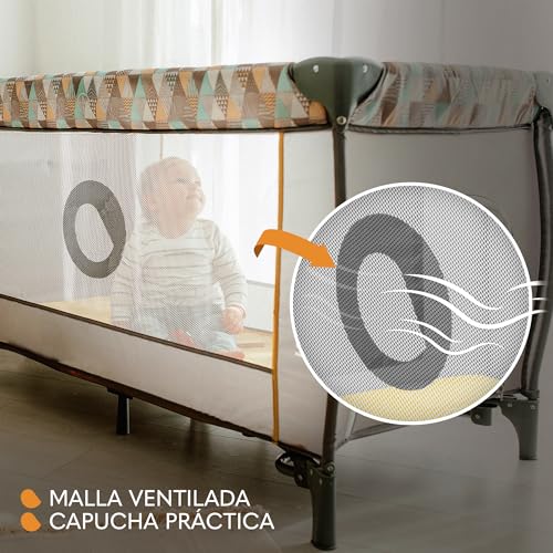 | función especial | Bolsa de transporte compacta con ruedas para fácil traslado, Cambiador seguro con organizador y bolsillos, Colchón de espuma ajustable en dos alturas, Mosquitera y dosel incluidos para mayor protección |