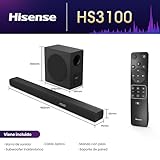 Hisense HS3100 - Barra de Sonido 3.1, 480W, Dolby Audio, DTS Virtual X, Bluetooth 5.3, HDMI ARC/Optical/AUX/USB, 6 Modos de Sonido, Modo TV, EzPlay
