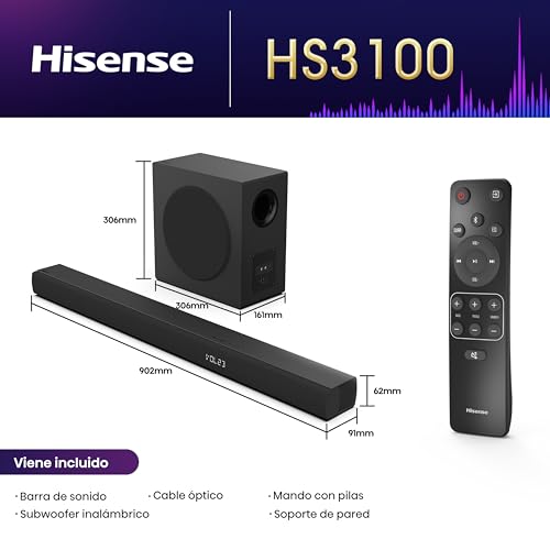 Barra De Sonido Hisense HS SERIES 3.1 Subwoofer Inalámbrico HS3100 Negro