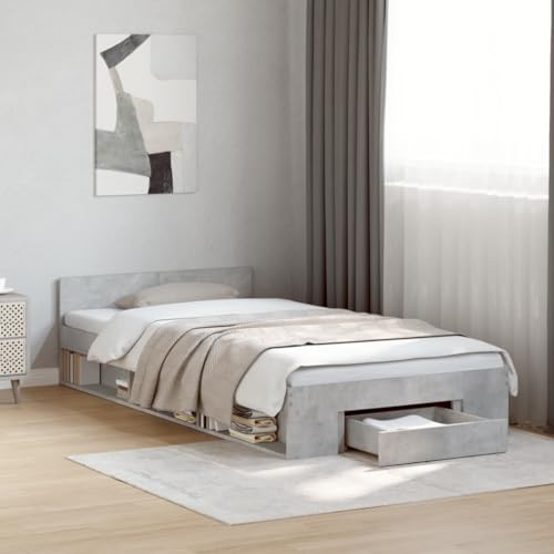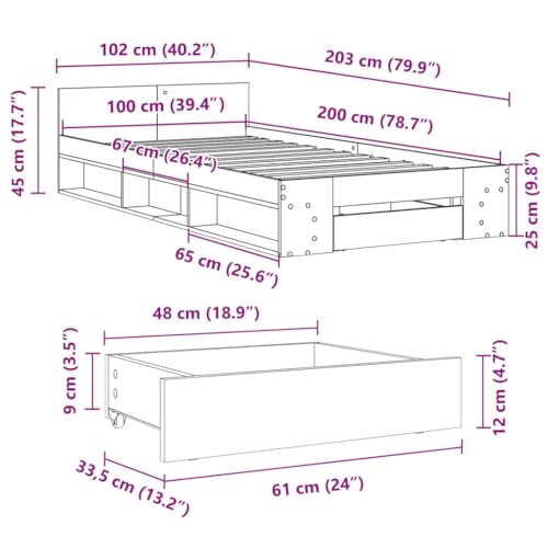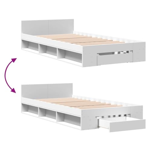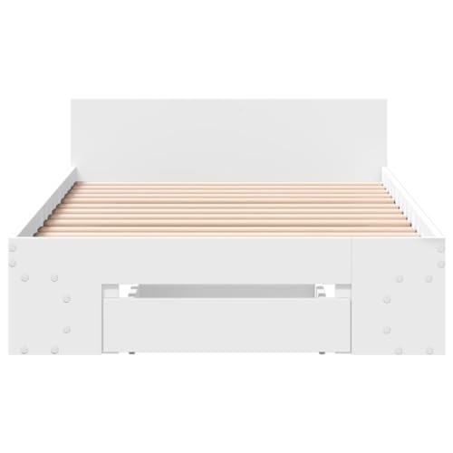 vidaXL Cama con cajón Madera de ingeniería Blanco 100x200 cm, Cama, Cama con almacenaje, Estructura de Cama Individual, Cama Individual