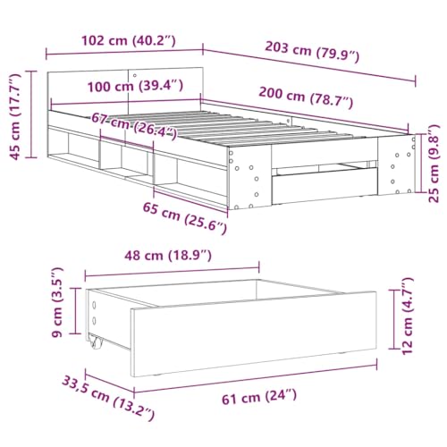 vidaXL Cama con cajón Madera de ingeniería Negro 100x200 cm, Cama, Cama con almacenaje, Estructura de Cama Individual, Cama Individual