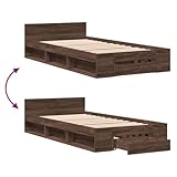 vidaXL Cama con cajón Madera de ingeniería marrón Roble 100x200 cm, Cama, Cama con almacenaje, Estructura de Cama Individual, Cama Individual