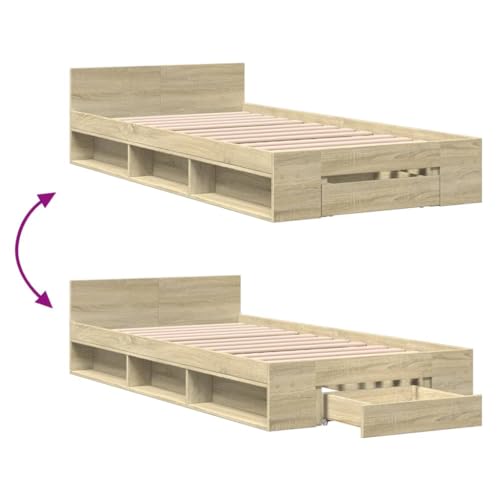vidaXL Cama con cajón Madera ingeniería Roble Sonoma 90x200 cm, Cama, Cama con almacenaje, Estructura de Cama Individual, Cama Individual