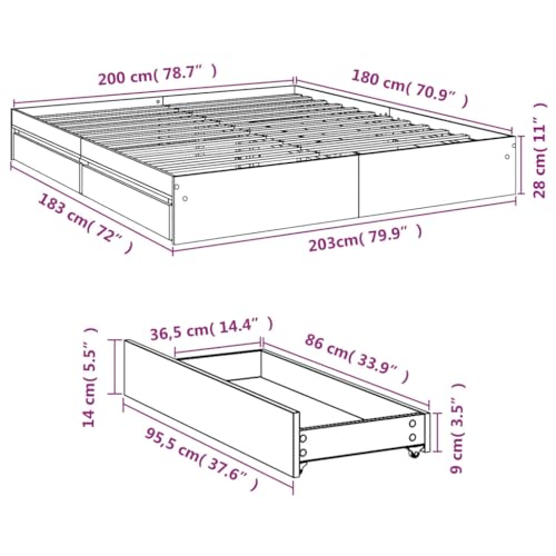 Estructura cama con cajones madera ingeniería blanca 180x200 cm Vidaxl