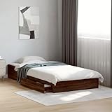 vidaXL Cama con cajones Madera de ingeniería marrón Roble 90x200 cm, Cama, Cama con almacenaje, Estructura de Cama Individual, Cama Individual