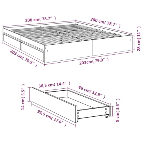 vidaXL Cama con cajones Madera ingeniería Gris hormigón 200x200 cm, armazón de Cama, Cama, Base de Cama, armazones de Cama, Cama Doble