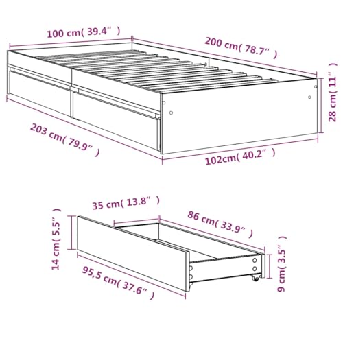 VidaXL Cama Individual Con Cajones de Madera de Ingeniería Blanco 100x200 cm - Estructura Con Almacenaje