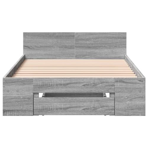 vidaXL Cama con cajón Madera de ingeniería Gris Sonoma 90x190 cm, Cama, Cama con almacenaje, Estructura de Cama Individual, Cama Individual
