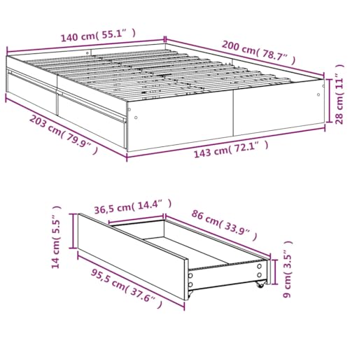 vidaXL Cama con cajones Madera de ingeniería Blanca 140x200 cm, armazón de Cama, Cama, Base de Cama, armazones de Cama, Cama Doble