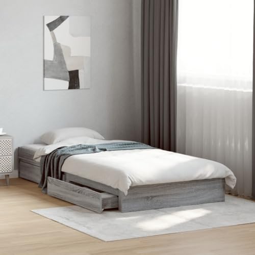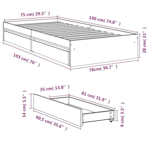 vidaXL Cama con cajones Madera de ingeniería Blanca 75x190 cm, Cama, Cama con almacenaje, Estructura de Cama Individual, Cama Individual