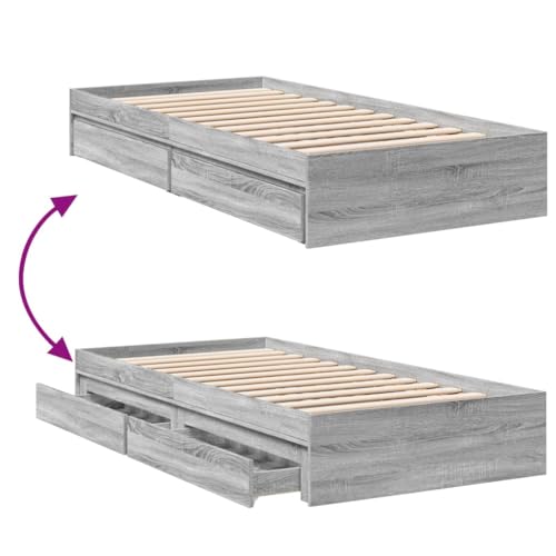 vidaXL Cama con cajones Madera ingeniería Gris Sonoma 100x200 cm, Cama, Cama con almacenaje, Estructura de Cama Individual, Cama Individual