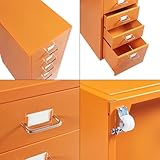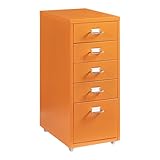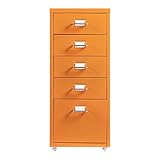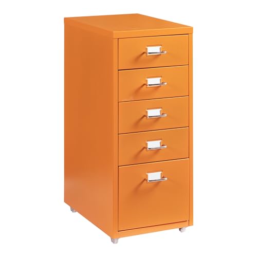 [en.casa] Archivador Móvil Kökar Organizador de Oficina con 5 Cajones Portaetiquetas Gabinete de Archivos con Ruedas para Despacho Taller 69 x 28 x 41 cm Acero - Naranja