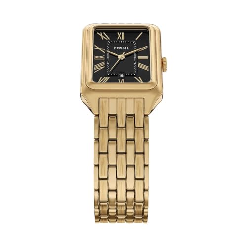 Fossil Raquel - Reloj para Mujer, Mecanismo de Cuarzo con Tres manecillas y Correa de Acero Inoxidable, Tono Dorado y Negro, 23 mm, Pulsera