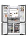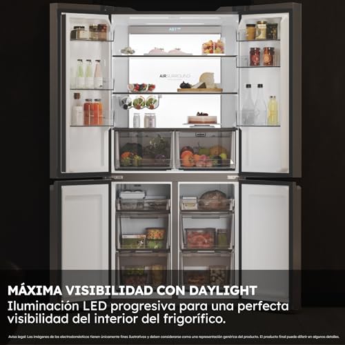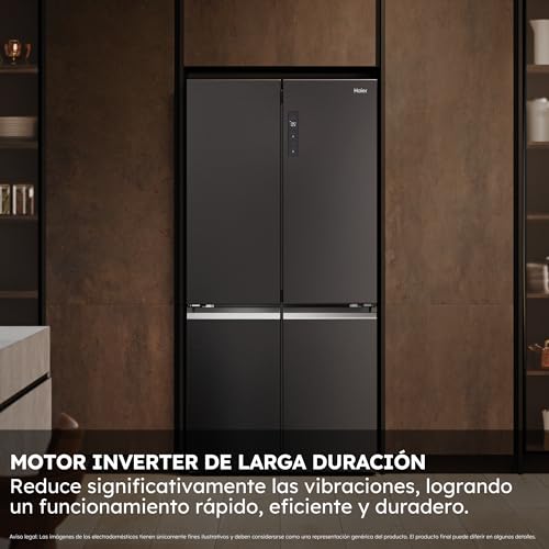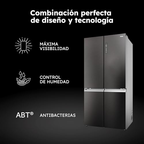 Haier Cube 90 Series 7 HCR79F19CNMD - Frigorífico 4 Puertas, Congelador 2 Zonas, Motor Inverter, Air Surround, Cajón Humidity Zone, Total No Frost, An 90,5cm, Capacidad 642L, Daylight, 37dB, Dark Inox
