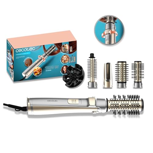 Cecotec Cepillo de Aire Rotativo CeramicCare 5in1 AirBrush Gyro Elite. 1100W, Función Iónica, 5 Cabezales, Función Rotativa Bidireccional, Revestimiento Cerámica, Punta Fría, 3 Modos Temperatura