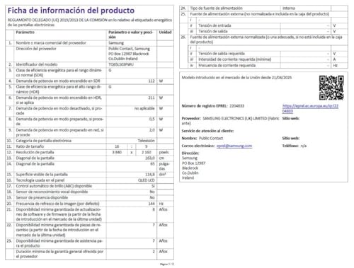 Samsung TV Neo QLED Mini LED 163 cm (65) The Frame Pro TQ65LS03FWUXXC 4K Samrt TV, Soporte incluido. Negro