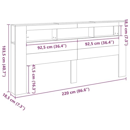 Cabecero led con estante Roble negro 220 x 18.5 x 103.5 cm Vidaxl