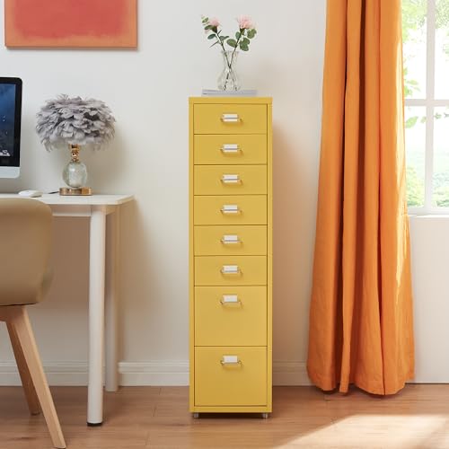 Archivador móvil Kökar con 8 cajones 109x28x41 cm acero - Amarillo [en.casa]