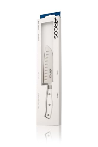Cuchillo Santoku Arcos Riviera Blanc 233224 de Acero Nitrum, con Mango de Polioximetileno y hoja de 14 cm en estuche
