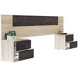 Cabecero para Cama de Matrimonio, dos Mesitas con dos Cajones en Color Oxido y Roble Canadian 150 cm