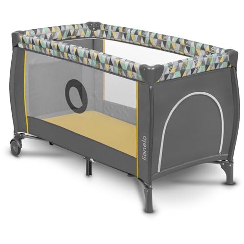 lionelo Sven Plus Cuna de Viaje para bebés 0-36M para niños hasta 15 kg Función de Cambiador Mosquitero Apertura Lateral con Cremallera Ajuste de Altura (Amarillo)