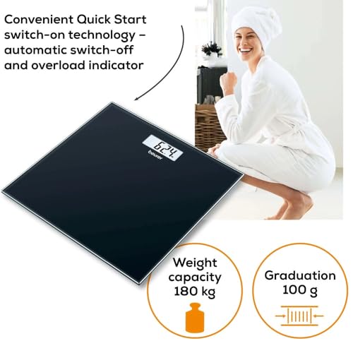 Beurer GS-10 - Báscula de baño digital ultra plana de vidrio, color negro