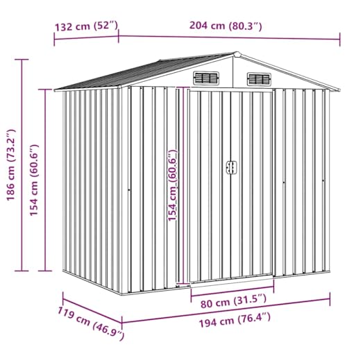 Caseta de jardín de metal 204x132x186 cm verde Decoración de muebles de jardín al aire libre