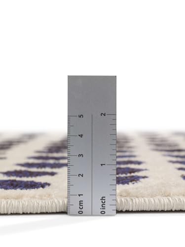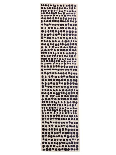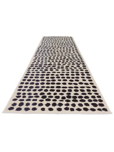 RugVista Square, Alfombra Moderna, Pelo Corto, 80 x 300 cm, Moqueta de Pasillo/Runner, Calidad Oeko-Tex Standard 100, Polipropileno, Pasillo, Dormitorio, Cocina, Salón, Despacho, Beige/Azul Oscuro