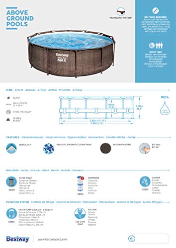 | Dimensiones del producto | 366 x 366 x 100 cm 31 kilogramos |
