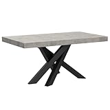 MOBILI FIVER, Mesa Extensible Emma 160(240) x90 cm, Color Cemento Gris con Patas Cruzadas Negras, para 6-10 Personas, Mesa Extensible de Comedor, Mesa Cocina, Salon, Made In Italy