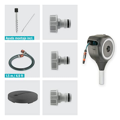 Gardena 18606-20 (15 m, Rollup S-Caja de Manguera para jardín, Color, Turquesa, Negro, Gris, Naranja, Blanco