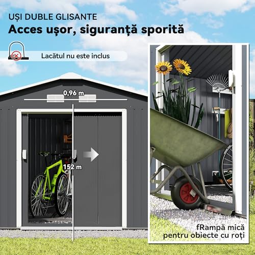 Outsunny Caseta Jardín Cobertizo Exterior Caseta de Acero para Almacenamiento con Puertas Correderas 340x386x200 cm 12,27 m² Gris Aosom España