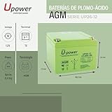 U-Power Batería AGM 12V 26Ah – Sellada Recargable Plomo-Ácido VRLA – para Alarmas, SAI/UPS, Energía Solar, Seguridad y Más – Terminal Tornillo Métrica M6