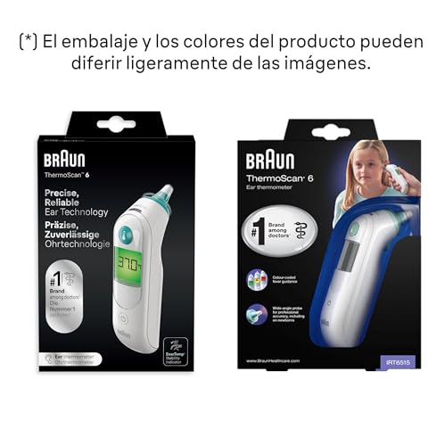 Braun ThermoScan 6 Termómetro de oído, Pantalla digital codificada por colores, Indicador de estabilidad ExacTemp, Apto para bebés y niños pequeños, La marca #1 entre los médicos(1), IRT6515