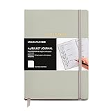 Miquelrius - Bullet Journal A5, Cubierta rígida símil piel y elástico de cierre, Cuaderno de notas punteado DOTS, 96 hojas de 100 g/m², Bolsillo interior y cinta marcador, Gris