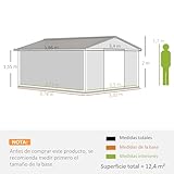 Cobertizo de jardín 340x386x200 cm 12,4 m² caseta de metal para almacenamiento de herramientas con puertas correderas y ventilaciones - Outsunny