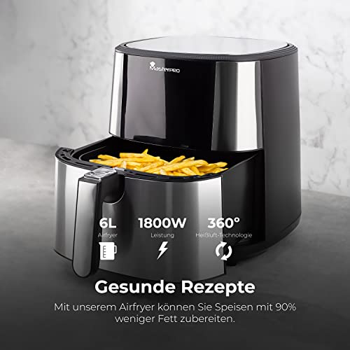 - MasterPro Foodies | Freidora Sin Aceite | Air Fryer XXL con Capacidad de 6L y 1800W de Potencia | Con Pantalla LED Táctil y Cesta Antiadherente | Freidora de Aire | 8 Funciones Diferentes en 1Mejor precioEnvío gratis|- €66,85