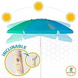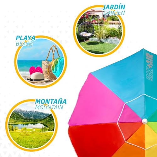 Aktive - Sombrilla de playa multicolor antiviento, protección UV50 con revestimiento plateado, mástil de metal 28/32 mm, sistema de inclinación, 8 varillas de fibra de vidrio, ventilación Max+Air y