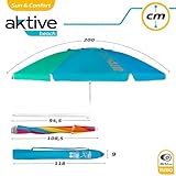 Aktive 62221 - Sombrilla de playa grande, Ø200 cm, sombrilla resistente al viento, protección UV 50, multicolor, mástil 28-32 mm, mástil flexible, incluye bolsa de transporte, Aktive Beach