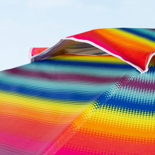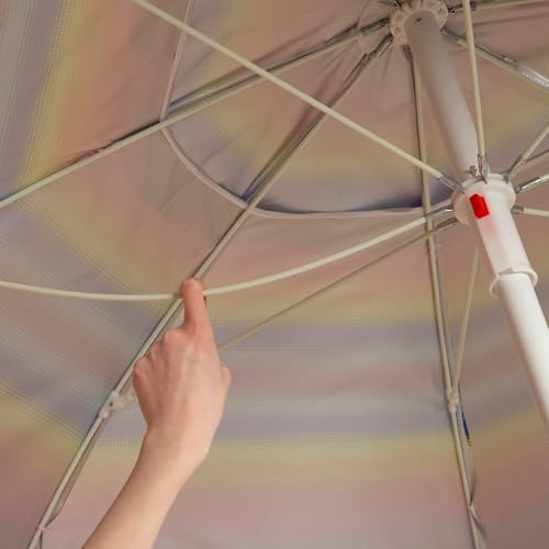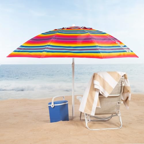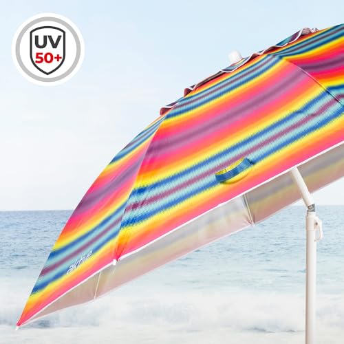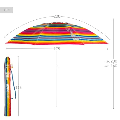 Aktive - Sombrilla de playa, antiviento, diseño de rayas multicolor, 8 varillas de fibra de vidrio, protección UV50, revestimiento plateado, mástil de metal, sistema de inclinación, ventilación